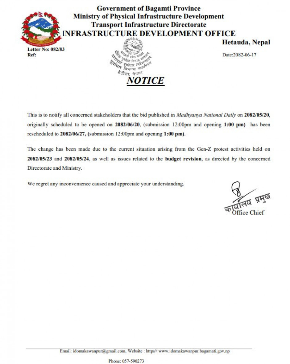 बोलपत्र खोलिने मिति सारिएको सम्बन्धमा